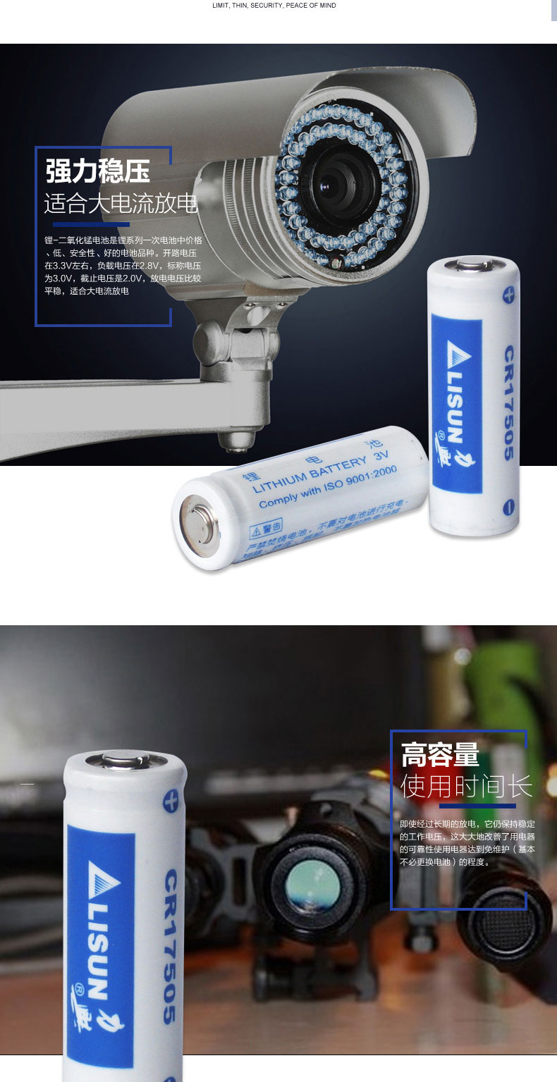 商品名称:LISUN/力兴CR17505水表电池 安防设备煤气表流量计电池 锂锰电池