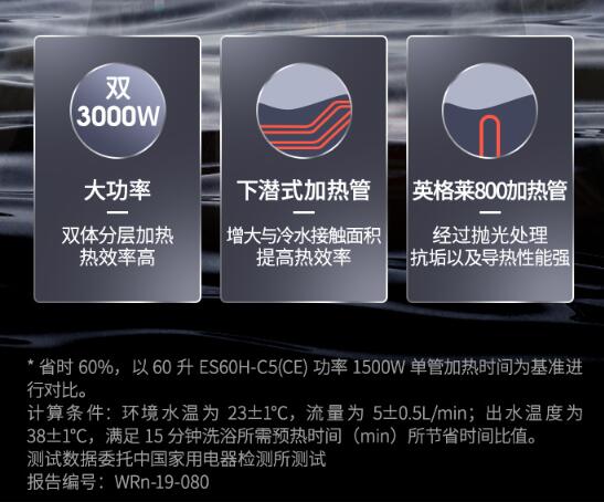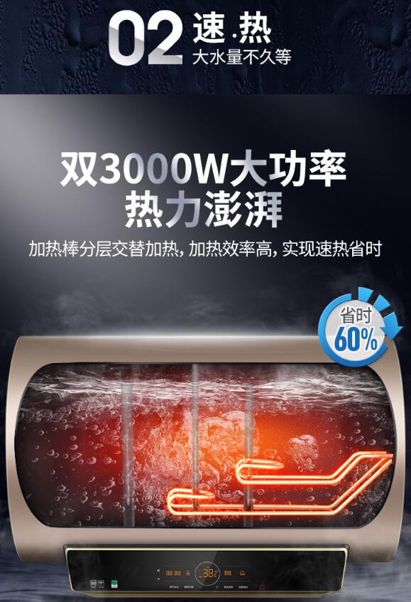 60升双3000W变容速热小尺寸短款储水式电热水器APP智能提前预约健康