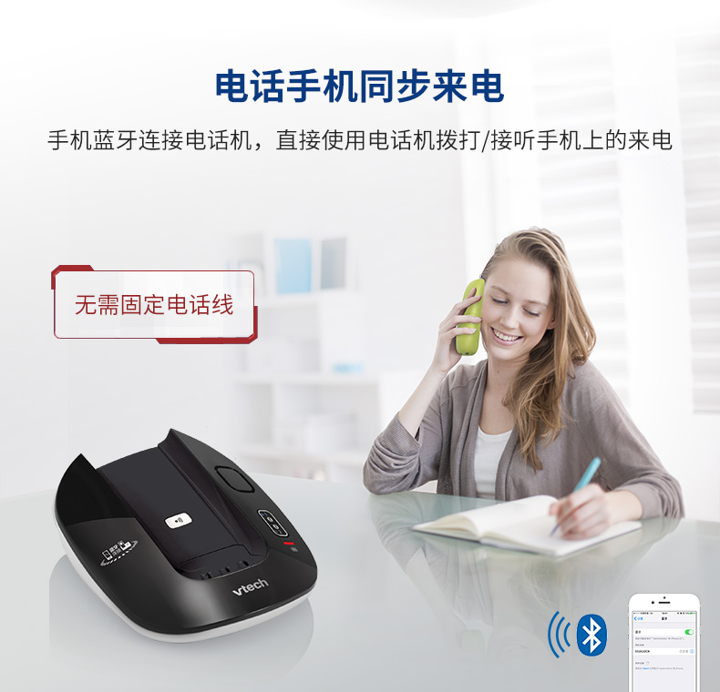 1610无绳电话单机子母机家用办公蓝牙无线座机电话机 黑色单主机