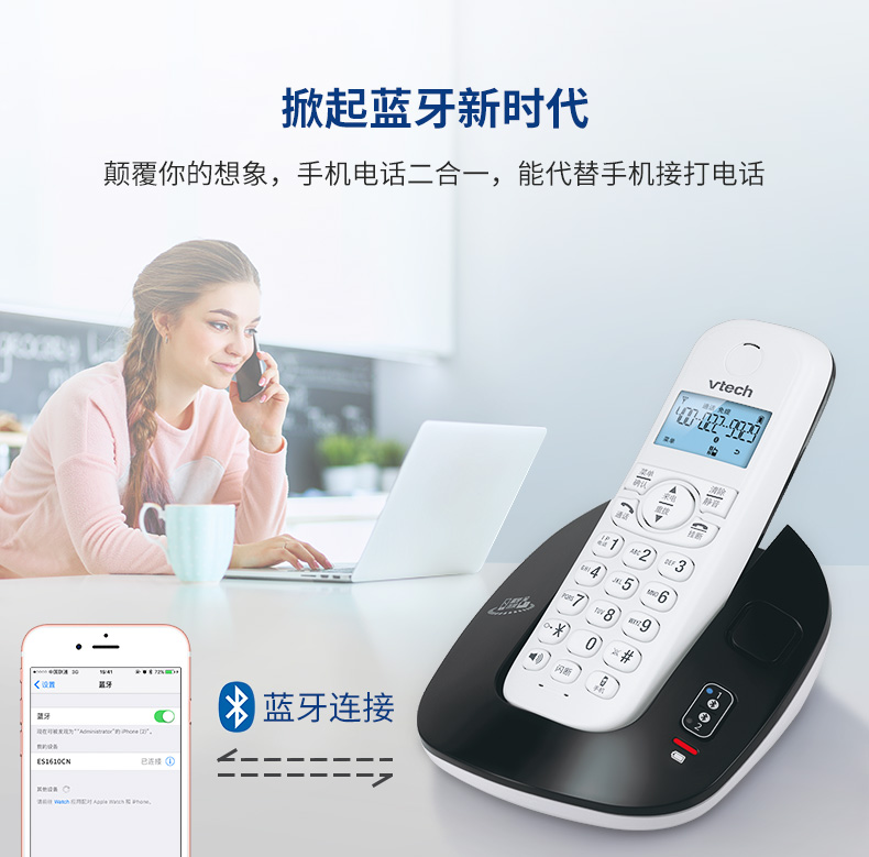 商品名称:1610无绳电话单机子母机家用办公蓝牙无线座机电话机 黑色单主机